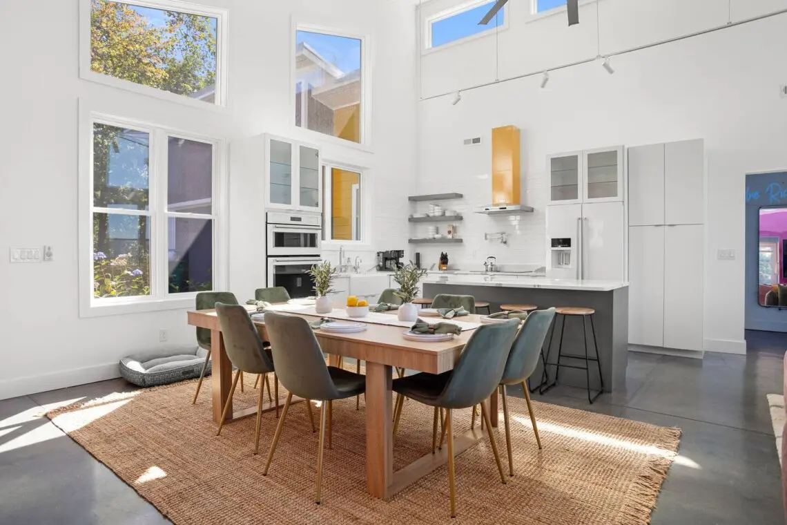 *FORMAL DINING AREA: A beautiful wood table seats eight, perfect for shared meals, celebrations, or an intimate dinner party.