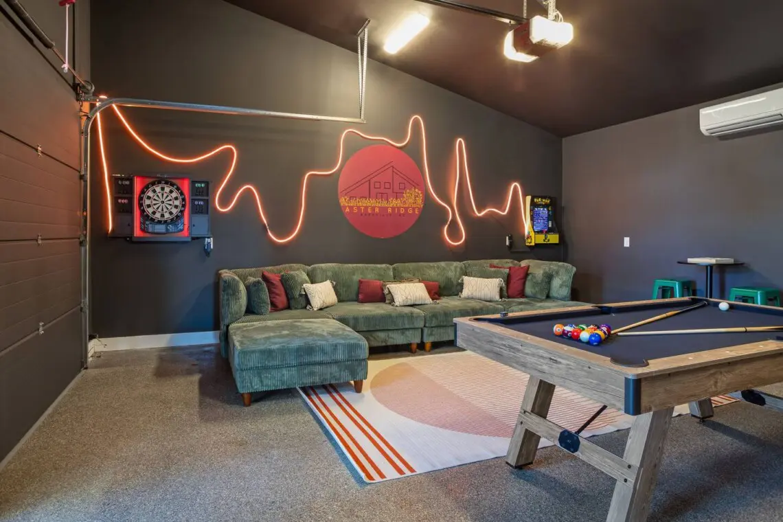 🎮 Play in the game room + enjoy a cozy movie night setup