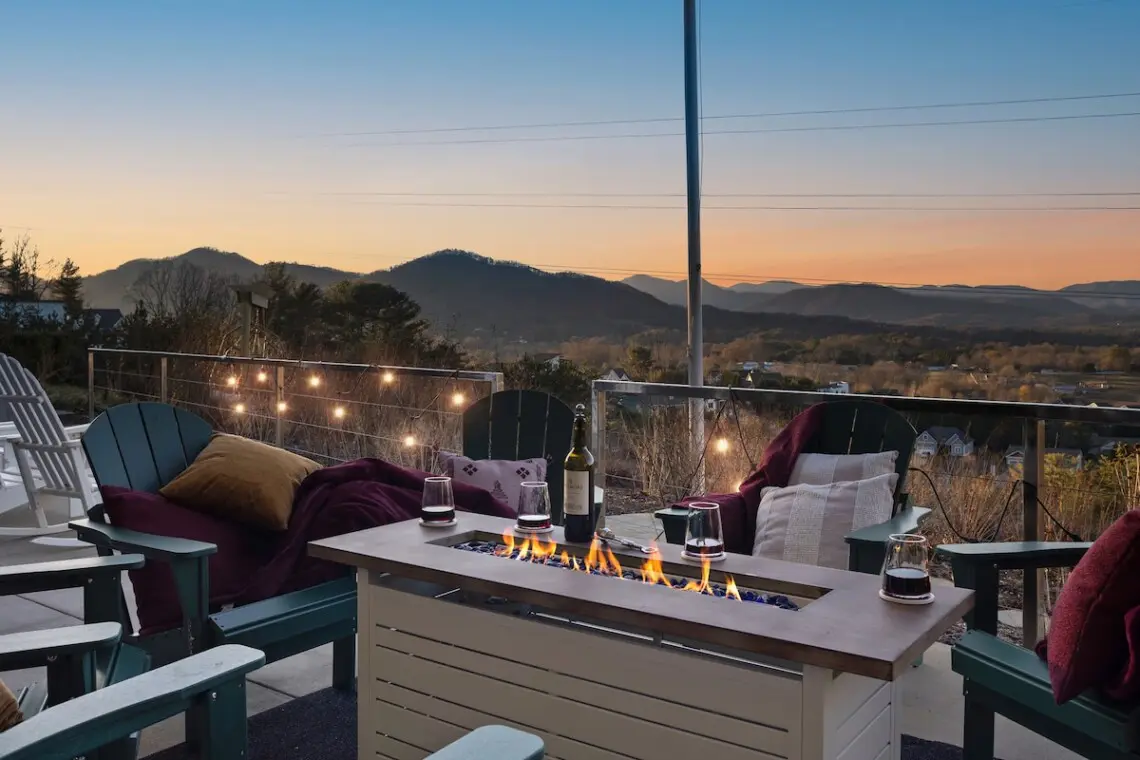 * MOUNTAIN & CITY VIEWS: Surrounded by the natural beauty of the Blue Ridge, the fire pit area is a perfect spot to relax after a day of adventures.