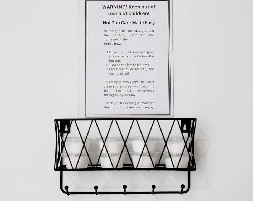 The hot tub has a cover with safety straps that must remain locked when not in use.