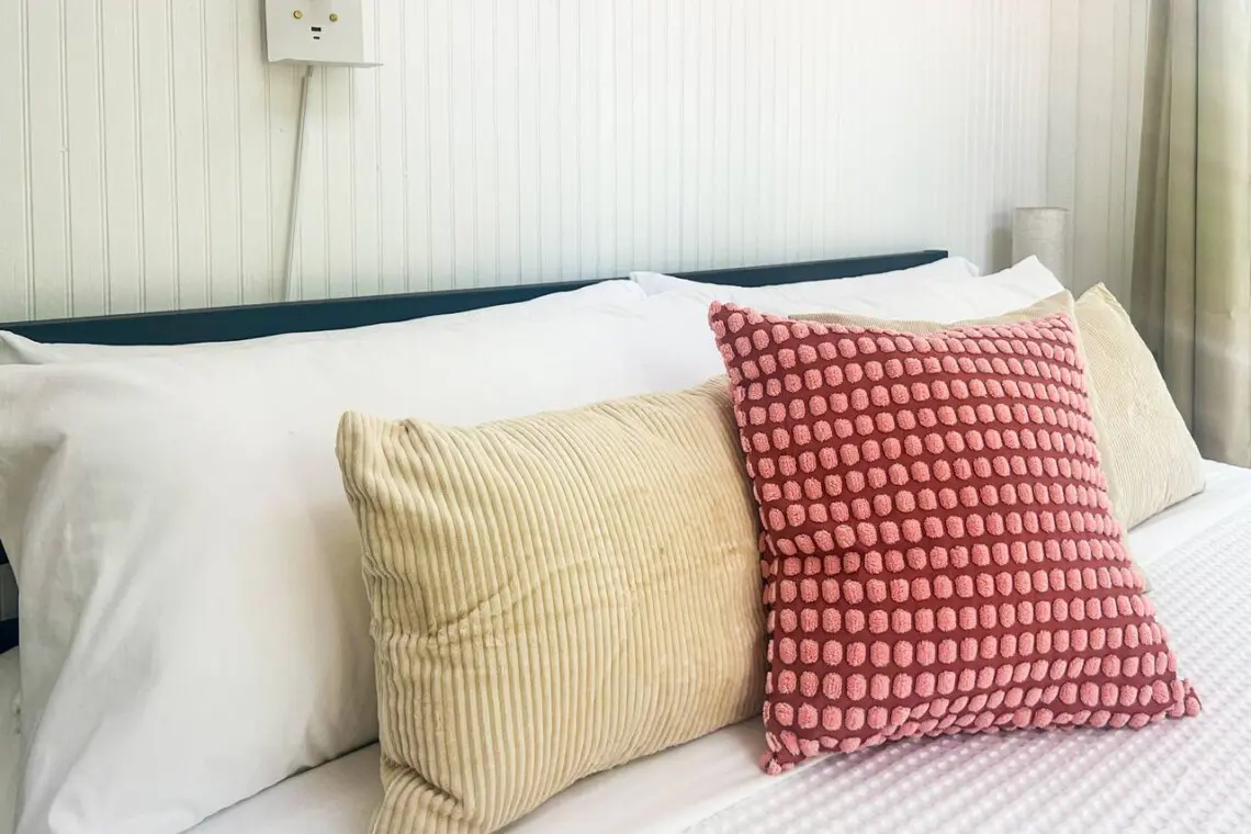 – Both with side table, lamp, night light, charging station, extra pillows/throws