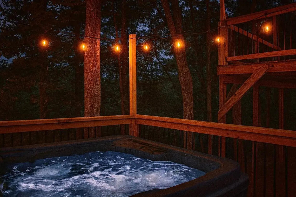 * Unwind in the hot tub under twinkling lights ✨