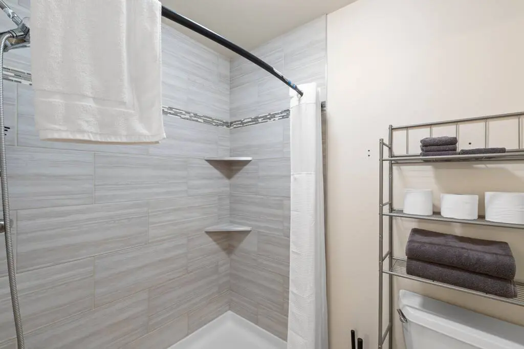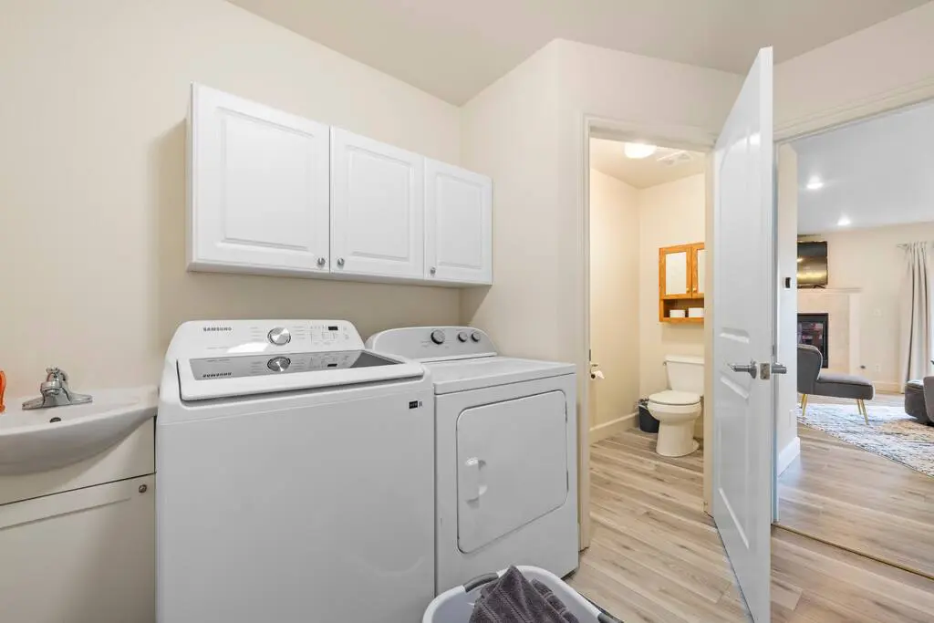 Convenient in-home laundry with a washer and dryer, making longer stays easy and stress-free.