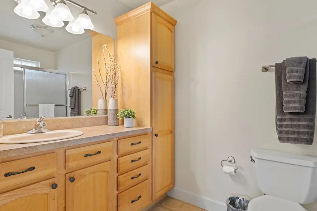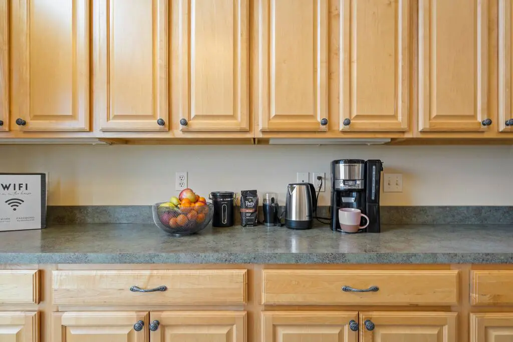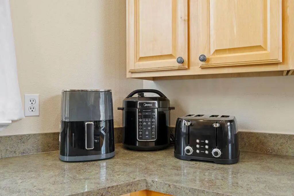 Forget fighting over kitchen space—here, you have one very large kitchen with loads of cupboard storage. Includes modern stainless steel appliances, dishwasher and full set of cookware. Extras include an air fryer, crock pot, toaster, and coffee pot and coffee bean grinder, for all your cooking needs.