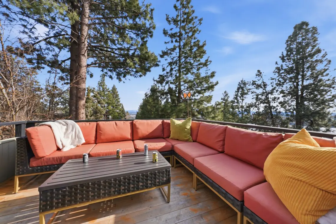 Your perfect Bend basecamp awaits—this comfy, spacious home features a huge 9-person hot tub, gourmet kitchen, and decks with seating for morning coffee and mountain views. Pets are allowed (small dogs preferred) with a fenced dog run, and the location is just 5 minutes to Drake Park and 3 minutes to Central Oregon Community College.